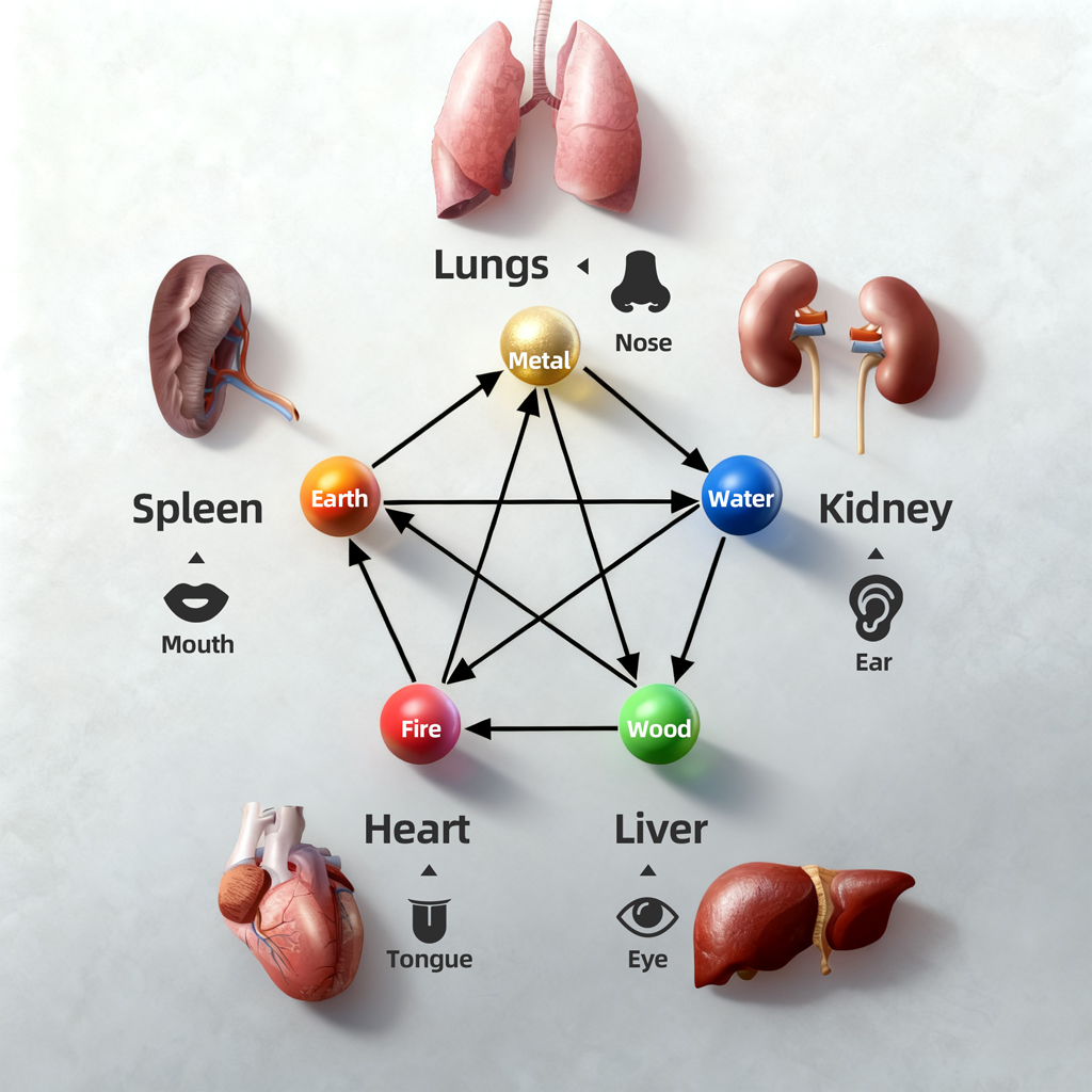In TCM—one of the world’s oldest continuously practiced medical systems—the Five Elements are the foundation for understanding health. The Huangdi Neijing (Yellow Emperor’s Inner Canon), TCM’s core text, states: “Nature has four seasons and five Elements, governing growth, harvest, decay, and rest. Humans have five organs, generating joy, anger, sorrow, worry, and fear.”