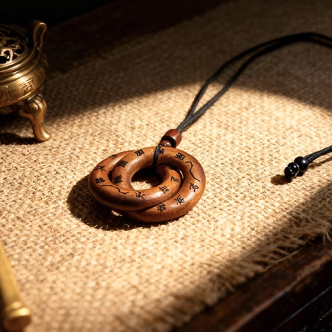 Jujube Wood Qiankun Ring Yin-Yang Pendant