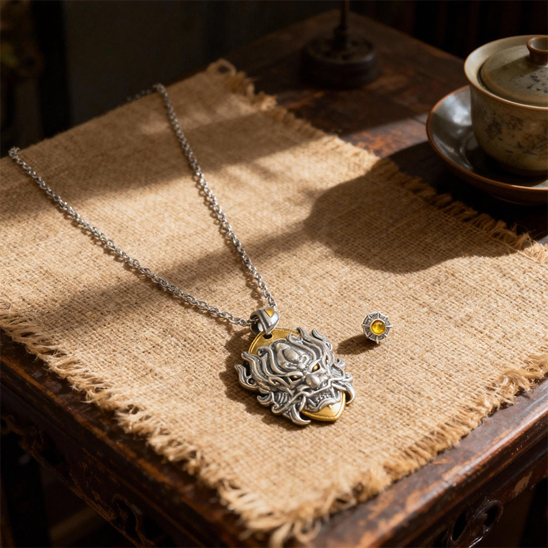 Five Elements Gold Series Dragon Pendant & Silver Earring Set