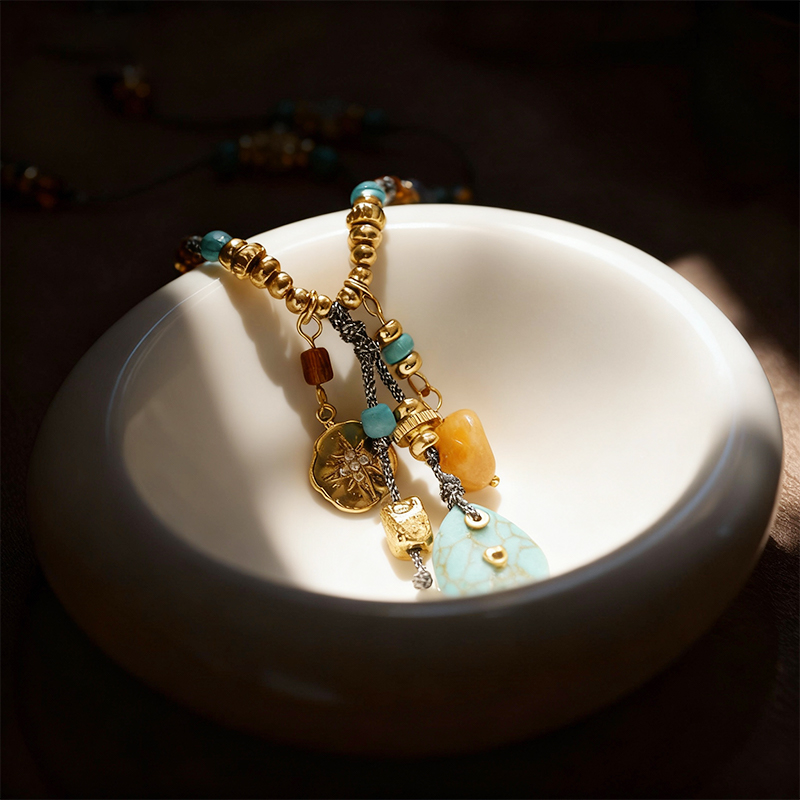 Ethnic – Style Tassel Turquoise Energy Balance Wood – Enhancing Jewelry Set