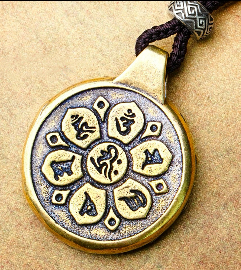 Brass Nine – Palace Eight – Trigrams Pendant with Hand – Woven Cord