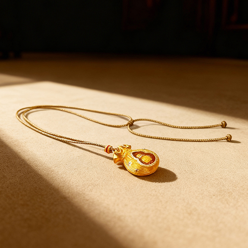 Rotatable Gourd Sand Gold Fortune Bag Pendant Necklace