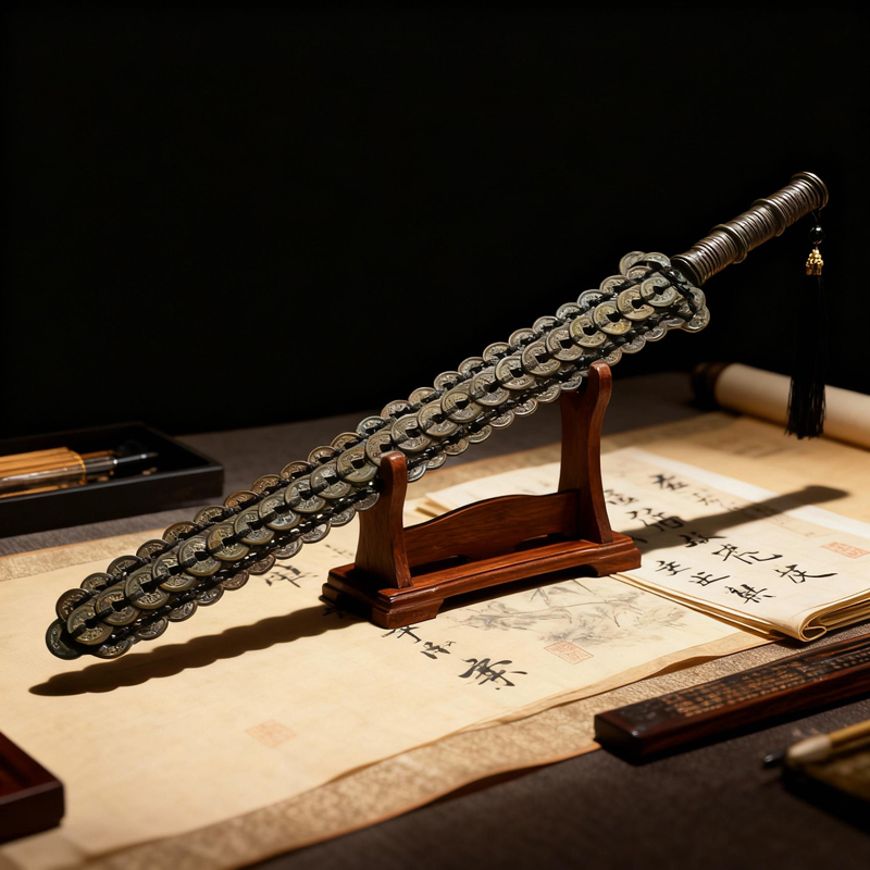 This Copper Coin Sword is a unique creation blending folk culture and coin culture, carrying rich historical charm and folk wishes.