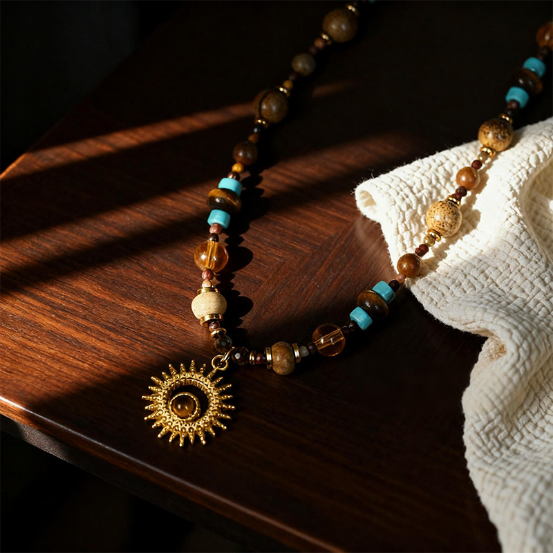 Featuring a combination of natural beads and an ethnic – style vintage pendant, this necklace is a blend of nature and culture. The natural beads, with their earthy tones and unique textures, are believed in feng shui to connect the wearer with nature's positive energy, promoting a sense of grounding and balance. The ethnic – style vintage pendant adds a touch of cultural richness, drawing inspiration from traditional artistry. Beads are carefully selected and strung together, creating a meaningful accessory.