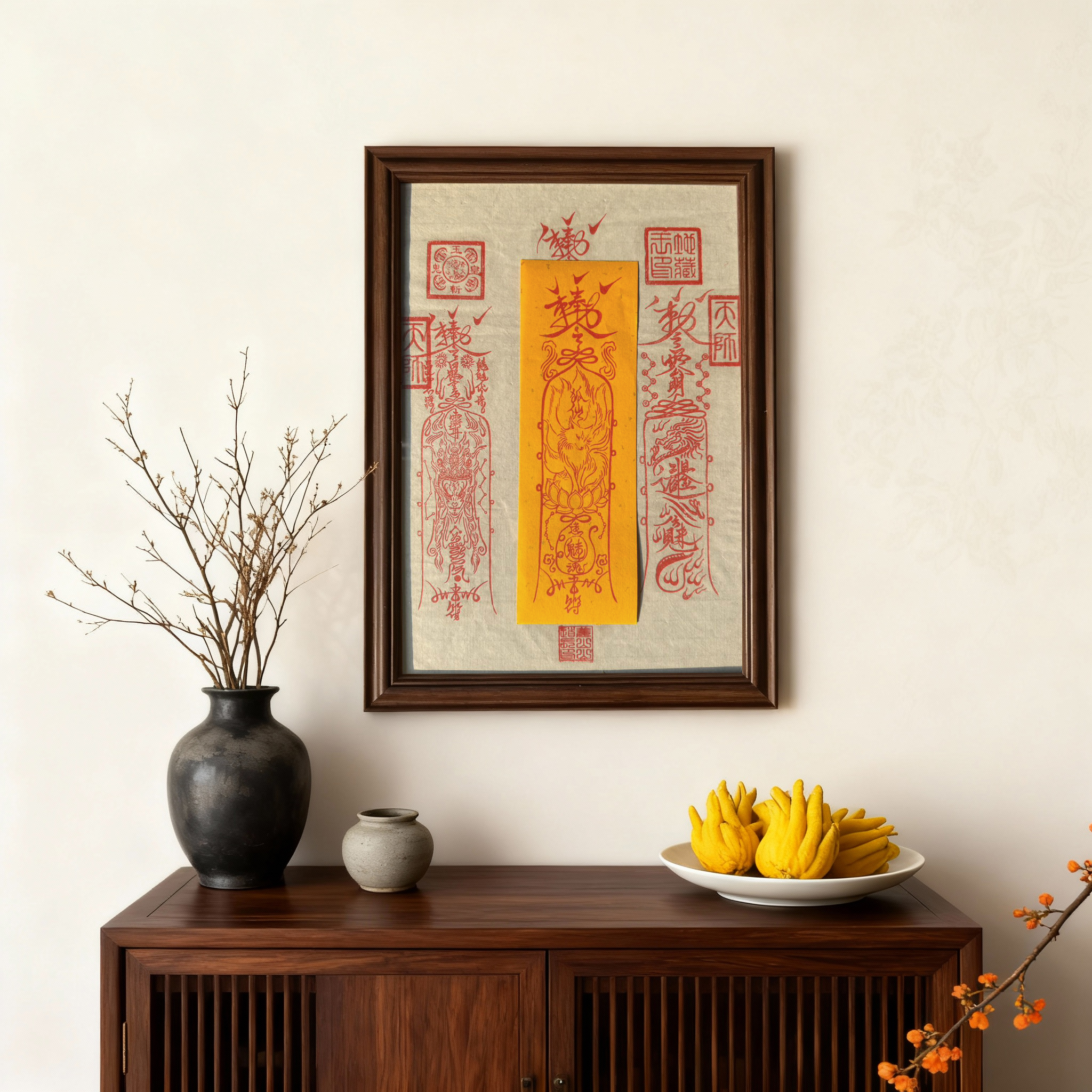 - Place or hang it on the middle layer of the living room entrance cabinet (at eye level), facing the door but not directly pointing to the entrance, serving as the first energy filtering barrier for the home to filter external negative auras and guard the stability of the whole house.