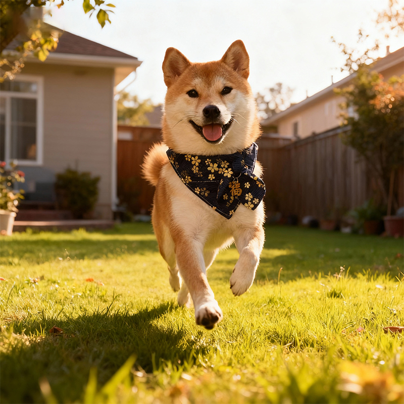 Inspired by traditional culture, this dog bandana features an exquisite floral pattern paired with the Chinese character "Fu", which symbolizes good fortune. The fabric is soft and comfortable, ensuring pets feel at ease while wearing it. Adorned with delicate details, it not only serves as a pet accessory but also carries cultural significance, allowing pets to embody a touch of elegance and blessing. It is a unique piece that combines aesthetics and cultural value for pets.