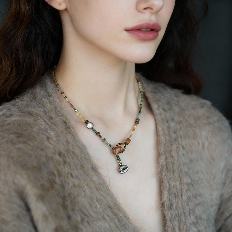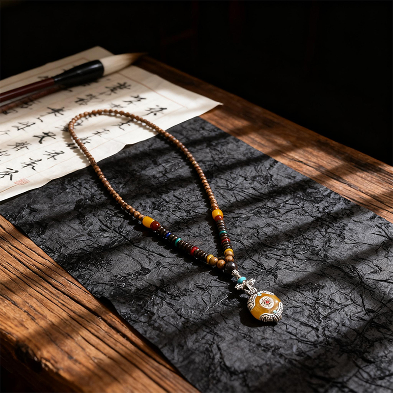Ethnic – Style Beaded Long Necklace with Zen Retro Pendant