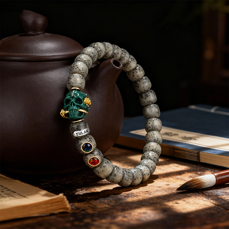 Crafted with natural moon and star bodhi beads and exquisite accessories, this bracelet features a warm matte gray hue, delicate and refined textures, and a smooth, lustrous touch—ideal for gentle hand-polishing . Moon and star bodhi carries profound symbolism: it embodies the harmonious coexistence of heaven and earth, guiding the wearer toward inner peace and mental clarity; it nurtures opportunities for spiritual awakening, urging people to pursue truth and let go of mundane distractions; it is also a symbol of perseverance, accompanying the wearer and fostering perseverance and a calm mindset amid the hustle and bustle of the world.
