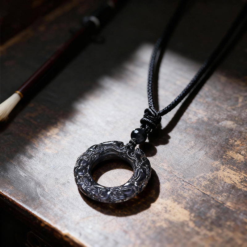 Natural Obsidian Pixiu Peace Buckle Pendant is a remarkable blend of traditional culture and exquisite craftsmanship.Obsidian, also known as "Dragon Crystal" or "Ten Victorious Stone", is a naturally formed silicon dioxide gem, usually black with a smooth and glossy surface, giving a sense of calm and grandeur. In traditional folklore, Pixiu is a mythical beast believed to bring good luck and ward off evil. This pendant, made from high-quality old-pit obsidian, is perfect for those who want to balance the water element in the Five Elements or seek protection and good fortune.