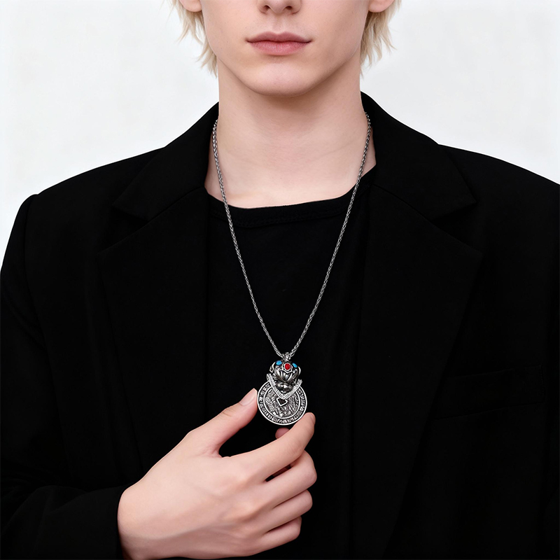 Crafted with elaborate artistry, this necklace features a Pixiu and Mountain Ghost Coin pendant. Pixiu is a traditional symbol of wealth attraction and protection, while the Mountain Ghost Coin embodies ancient cultural meanings of warding off misfortune and inviting prosperity. It inherits ethnic craftsmanship and cultural traditions, serving as a meaningful piece that brings wealth, protection, and auspiciousness.