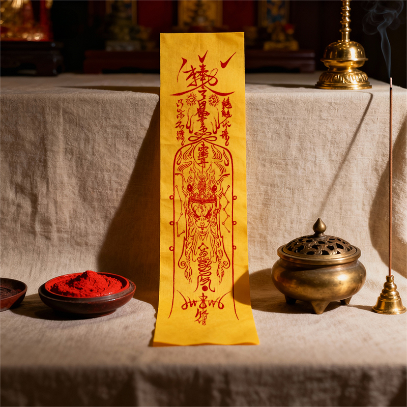 Function: Hand-painted with pure gold ink, it gathers the divine power of the Supreme and the protection of heavenly guardians, building a multi-layered protective aura. It can dispel evil spirits and suppress negative energies, resolve negative auras in homes and offices; protect life, resist unexpected disasters and harassment from villains; and also help to attract good fortune, breaking through obstacles in career and studies, protecting smoothness and well-being. Suitable for people pursuing all-round fortune protection, in complex environments, or expecting a peaceful home.Usage: ① Hang it on the main wall of the living room or the auspicious position of the bedroom at home, slightly higher than eye level, to gather the divine power of the gold ink talismans and build a solid protective barrier for the home; ② Hang it in a prominent place in the office, such as behind the work station or at the entrance of the conference room, to help career and academic success and stay away from disputes and disasters.