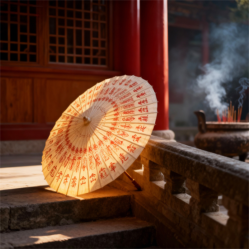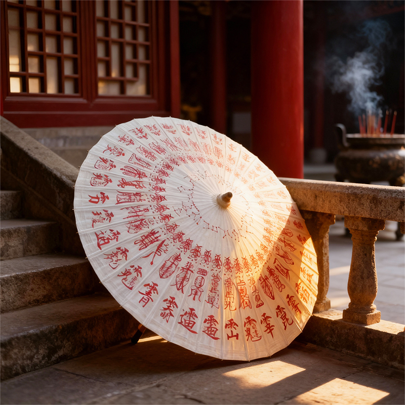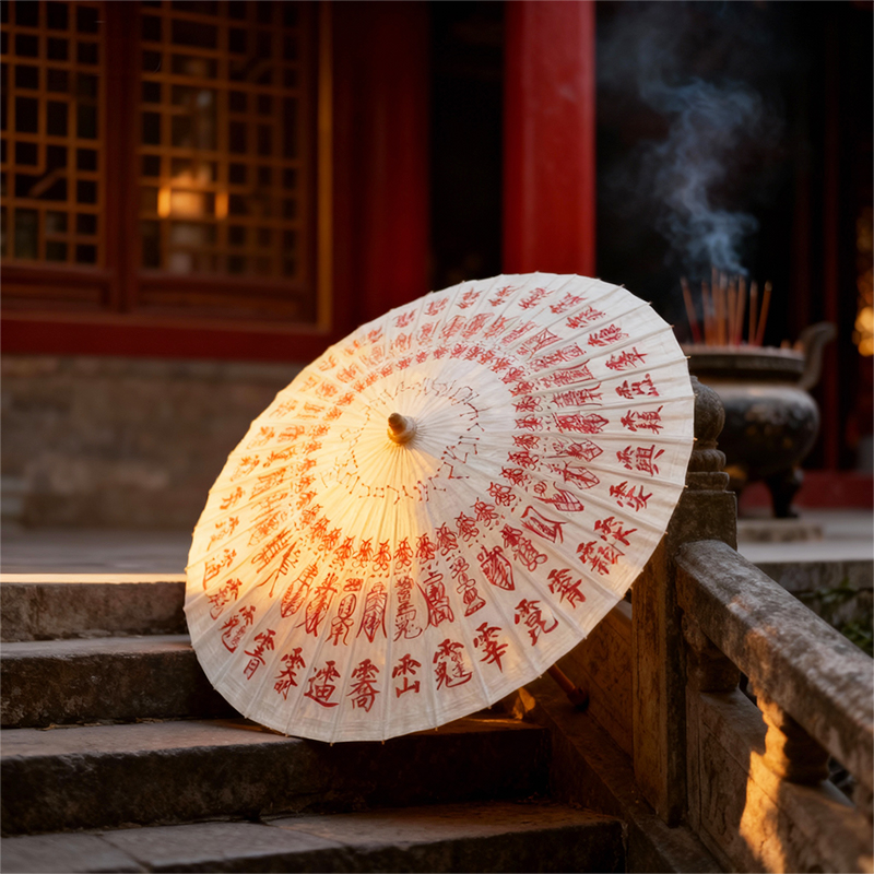 Function: Hand-painted with cinnabar ink, the umbrella features talismans of thirty-six Thunder Gods, gathering the divine power of heavenly guardians to form a mobile protective aura. It can dispel evil spirits and suppress negative energies, resisting harmful auras and external evils during travel; protect against dangers, ensuring safety in wilderness, nighttime, and other scenarios, while guarding against scheming by villains and evil spirits; and also help attract good fortune, breaking through obstacles in career, studies, and outdoor affairs, protecting smoothness and well-being. Suitable for those pursuing travel safety, in complex environments, or needing frequent travel.