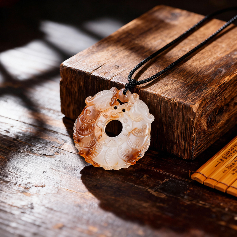 Natural agate five-element healing pendant for strengthening the earth element, with a peace-themed keychain