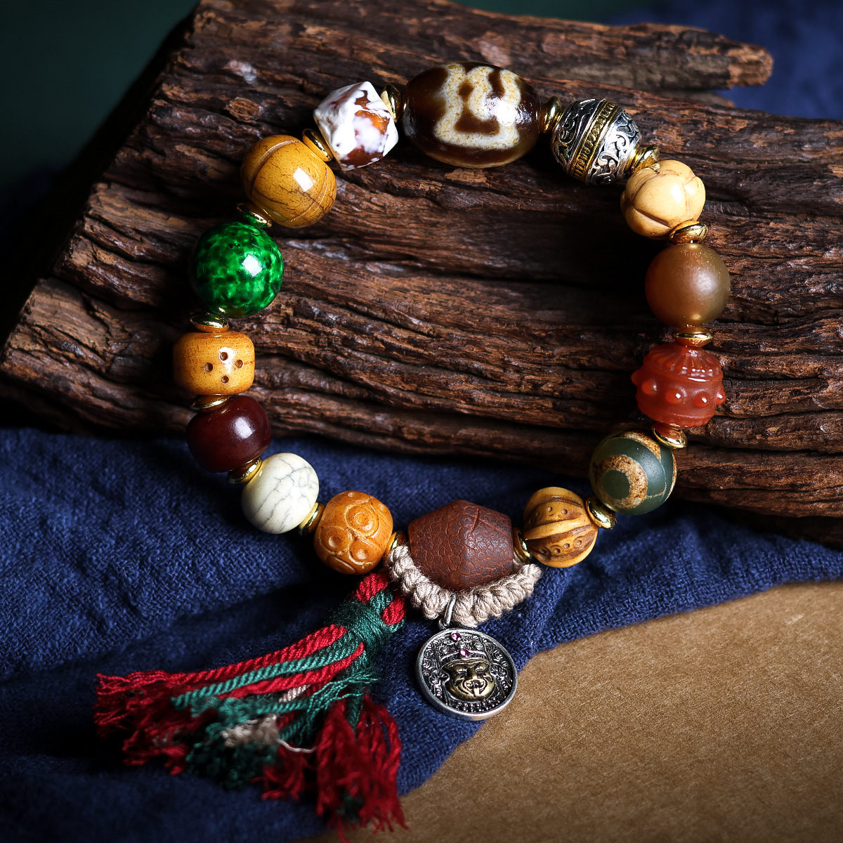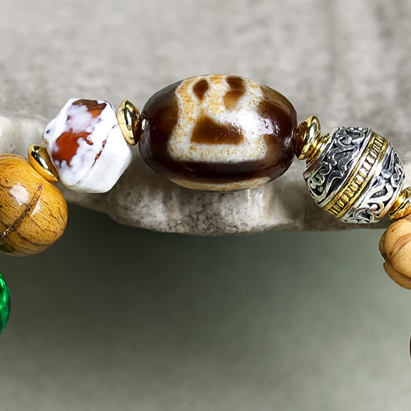 Yak Bone Multi-Treasure Bracelet with Dzi Bead